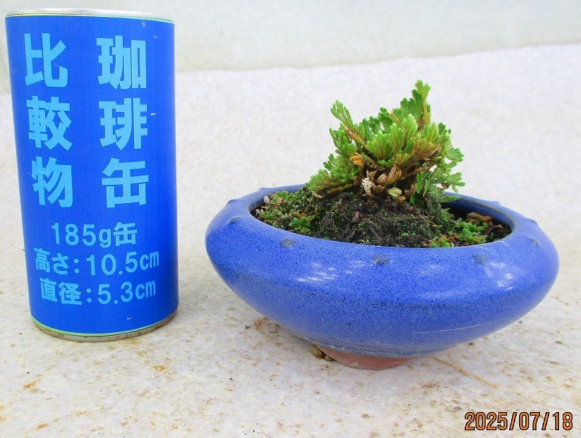 - [緑の市場] ミニ盆栽 岩松 (71694均釉丸鉢)全高:10㎝【小型送料】*同梱包対応「まとめて取引」厳守*60サイズ送料明記