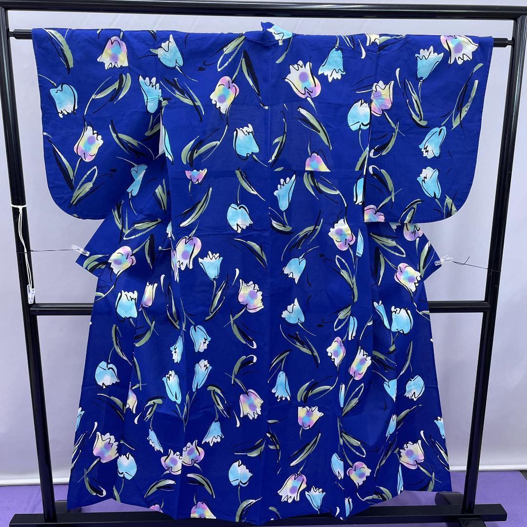 - ★3144★ 浴衣 夏着物 ゆかた 濃いブルー チューリップ