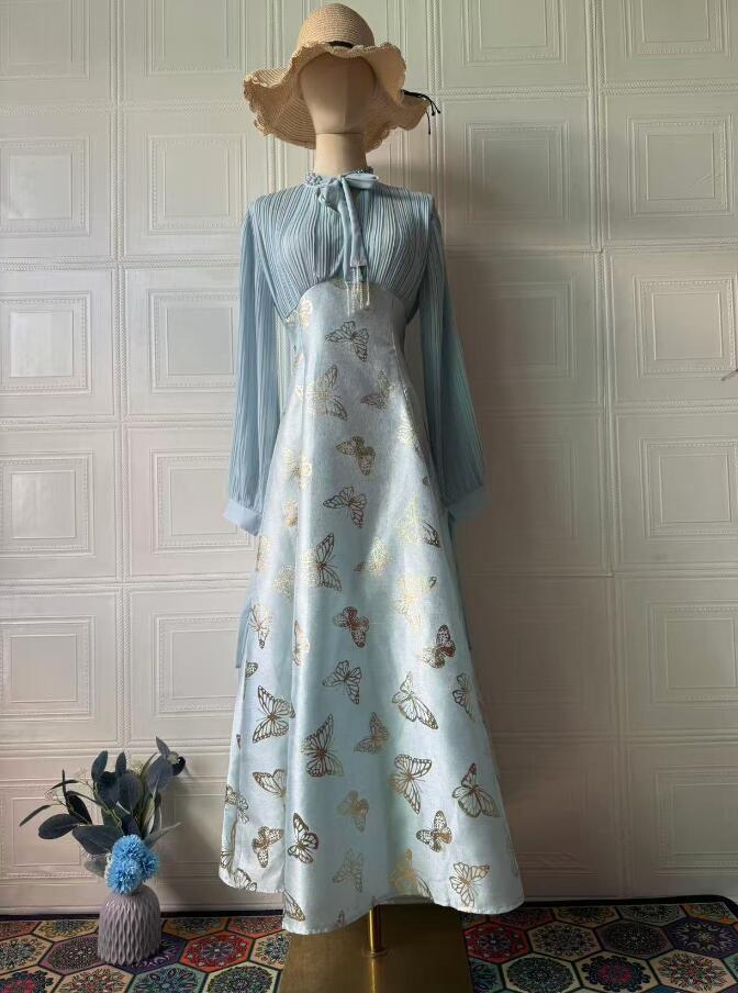 - 315 ワンピースladiesレディース ◇魅惑Styleセクシー ◇ 披露宴ドレス ロング丈 長袖 水色