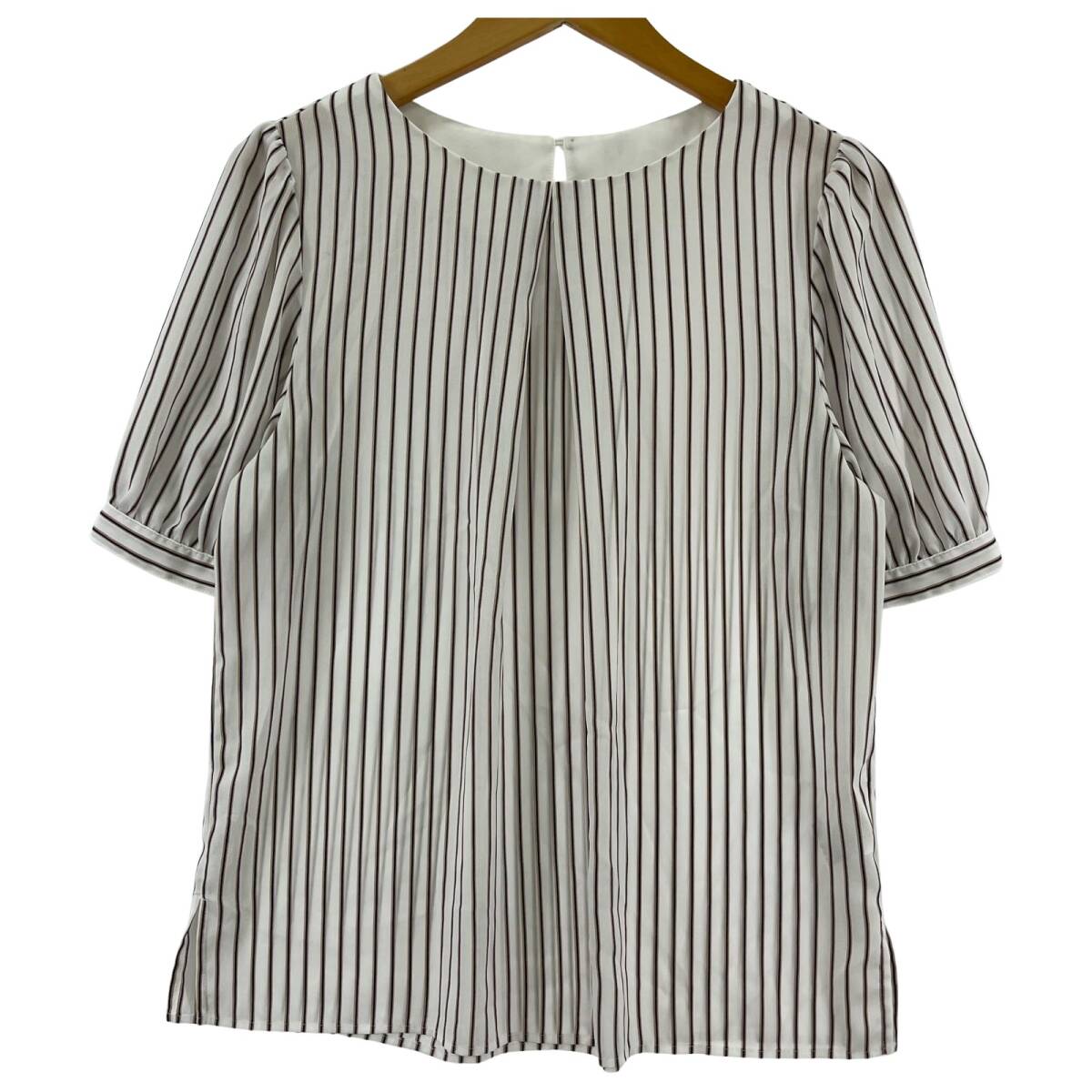 > NATURAL BEAUTY BASIC ナチュラルビューティーベーシック ストライプ ブラウス sizeM/ホワイト×ベージュ系 ゆうパケットOK