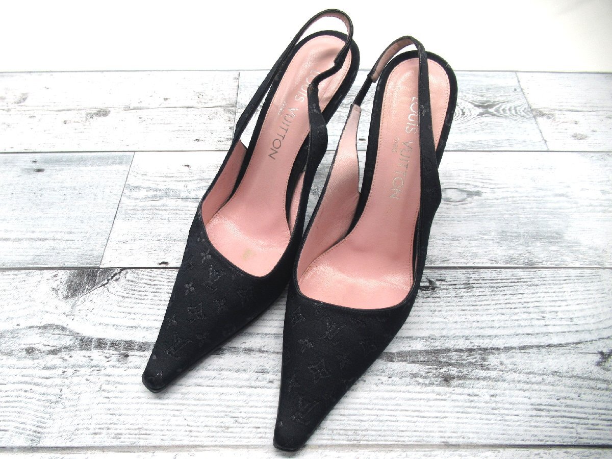 - ★【B送900円】2207 LOUIS VUITTON ルイヴィトン モノグラム ストラップミュール パンプス ポインテッドトゥ 黒 イタリア製 36 1/2