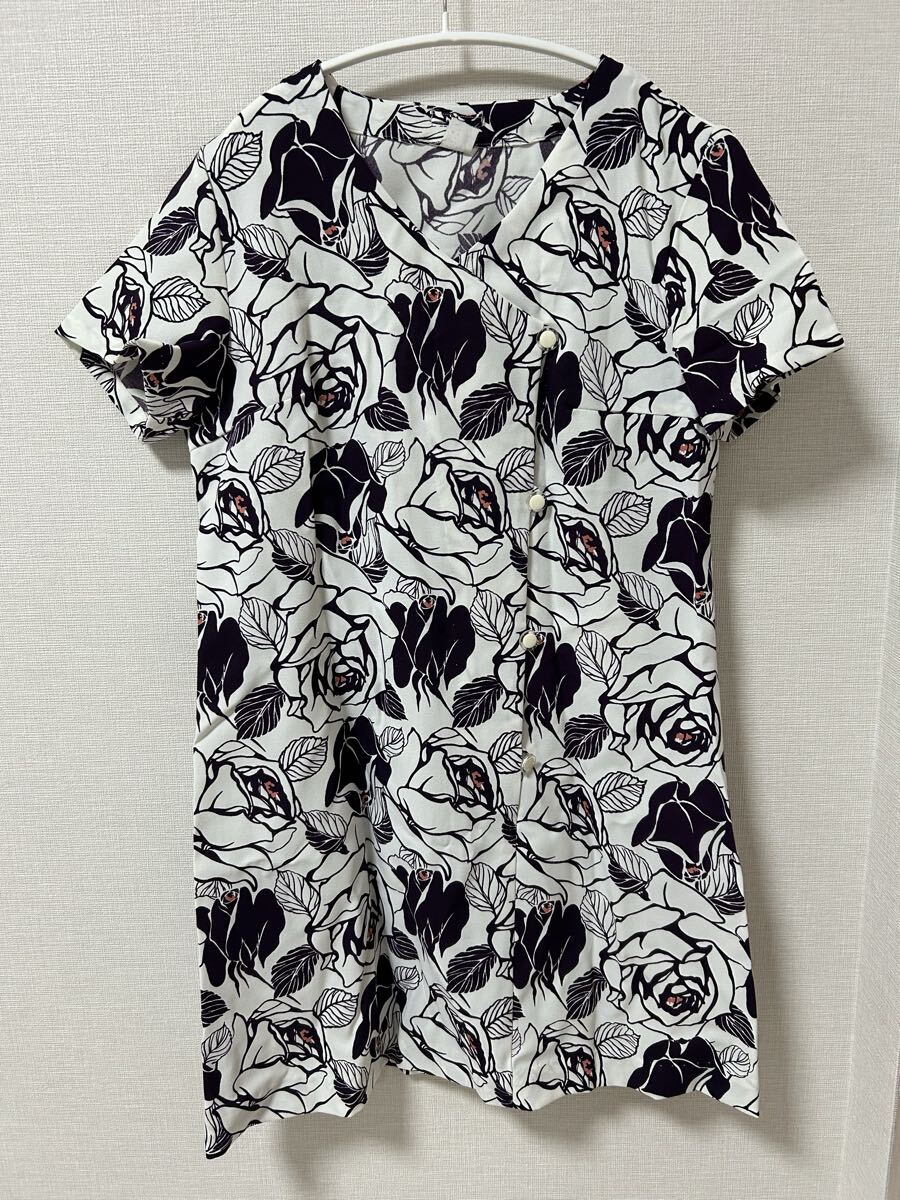 - 昭和レトロヴィンテージ レディスミニワンピース 半袖ワンピ 総柄