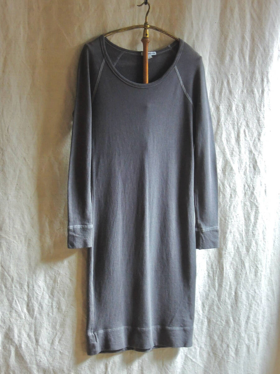 > TOMORROWLAND別注 米国製 JAMES PERSE スウェットワンピース USA製 チャコール 裏起毛 ロング丈 灰色 リブ ナイトウエア パジャマ 寝具