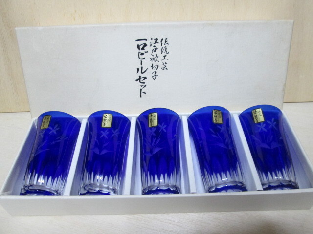 - ★江戸被切子グラス 一口ビールセット 5個 未使用★