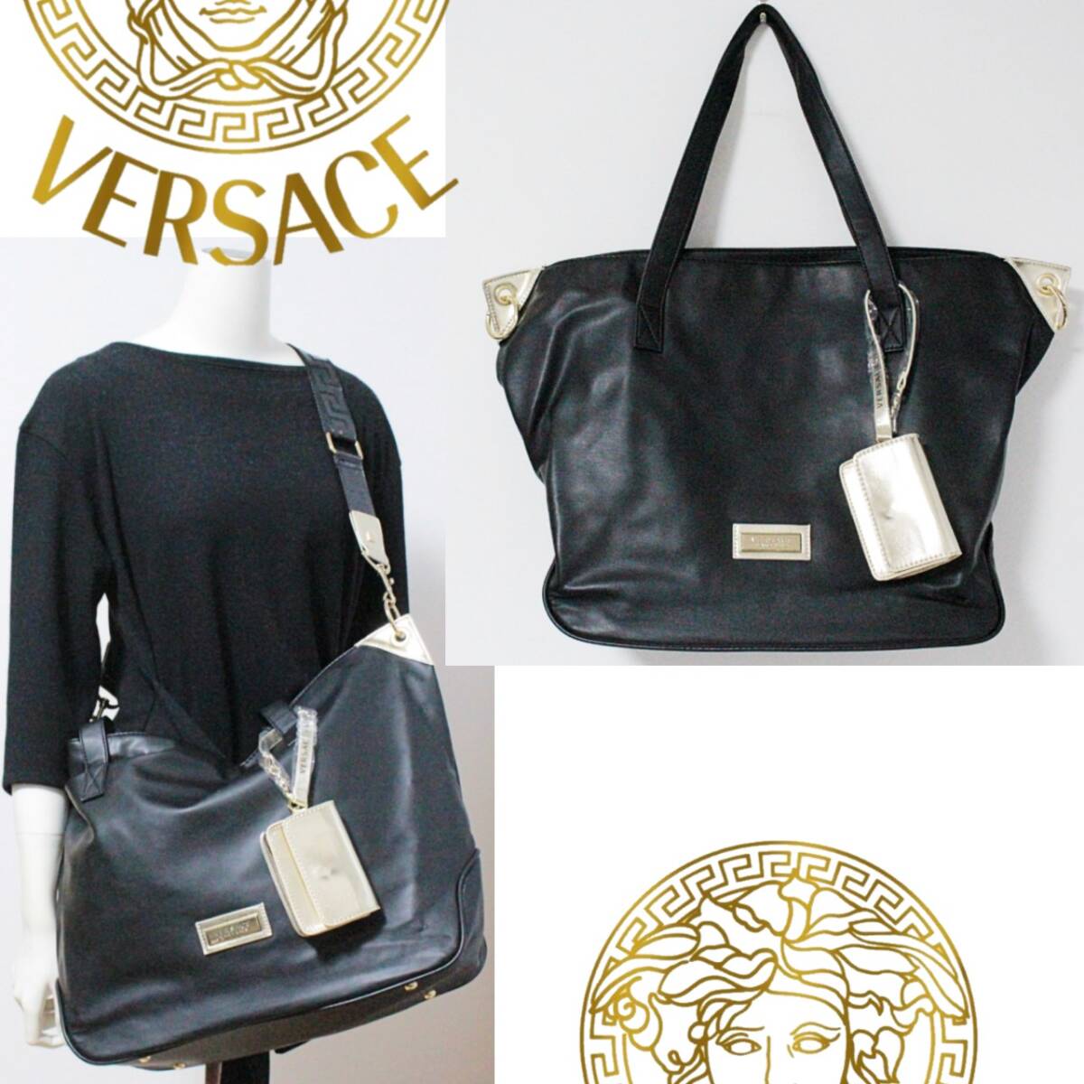 - 新品 ヴェルサーチ ゴールドポーチ付 2WAY 大容量トートバッグ 男女兼用 K5446