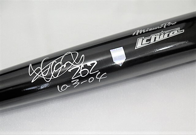 イチロー直筆サイン年間最多安打記録262及び日付10-3-04書込み入り試合モデルバット