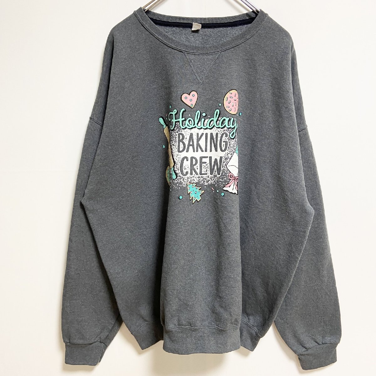 - 古着 used FRUITOFTHELOOM 長袖プリントスウェット トレーナー お菓子 グレー ビッグシルエット 2XLサイズ