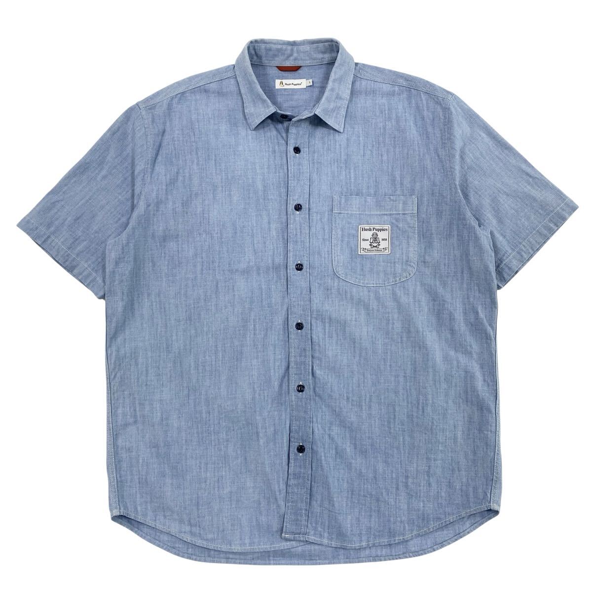 - Hush Puppies(ハッシュパピー)半袖シャツ ワッペンロゴ メンズL ライトブルー系