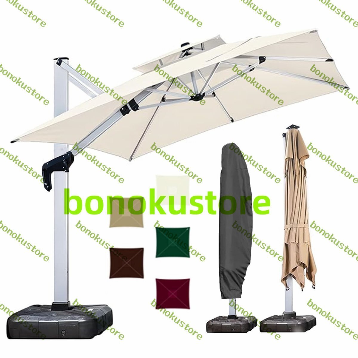 - 大型ガーデンパラソル 風に強い 強化八骨&二重吊り構造 11CMの厚いロッド190KGの水タンク 耐候性アルミ合金 360度回転式 幅2.5m高さ 2.66m