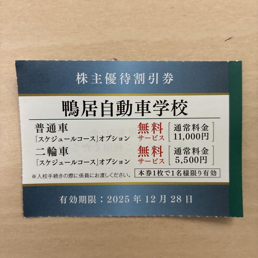 - 12/28期限★1枚 鴨居自動車学校 スケジュールコース オプション無料 割引券(普通車 二輪車)京急 京浜急行 株主優待割引券