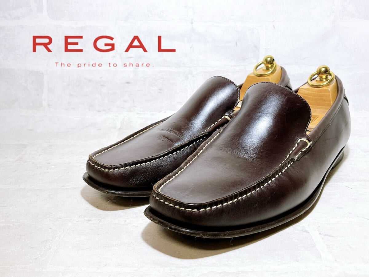 - 【極美品】REGAL リーガル 高級 スリッポン レザーローファー 革底 茶 本革 26.5cm メンズ ビジネスシューズ 紳士靴
