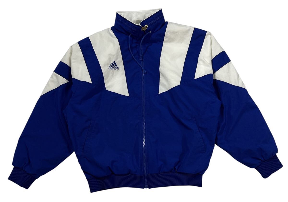 - 90s ヴィンテージ デサント製 ▲ adidas アディダス EQUIPMENT エキップメント ▲ パフォーマンスロゴ刺繍 ナイロン ジャケット ブルー XO