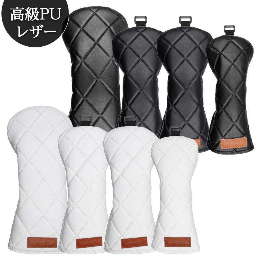 - ヘッドカバー セット ドライバー ウッド カバー ユーティリティ ゴルフ UT ドライバー440cc 460cc用防水仕様 無地ダイヤ 4点セット