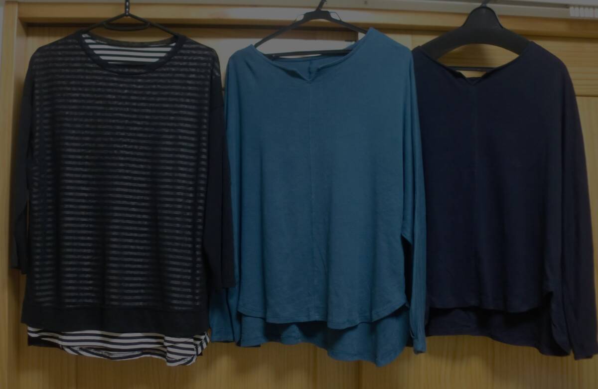> 大きいサイズ3L/3点まとめて■ゆったり綿100%ドルマンチュニック2点青黒&重ね着風チュニック袖シースルー■数度程度着用品■LP+発送可