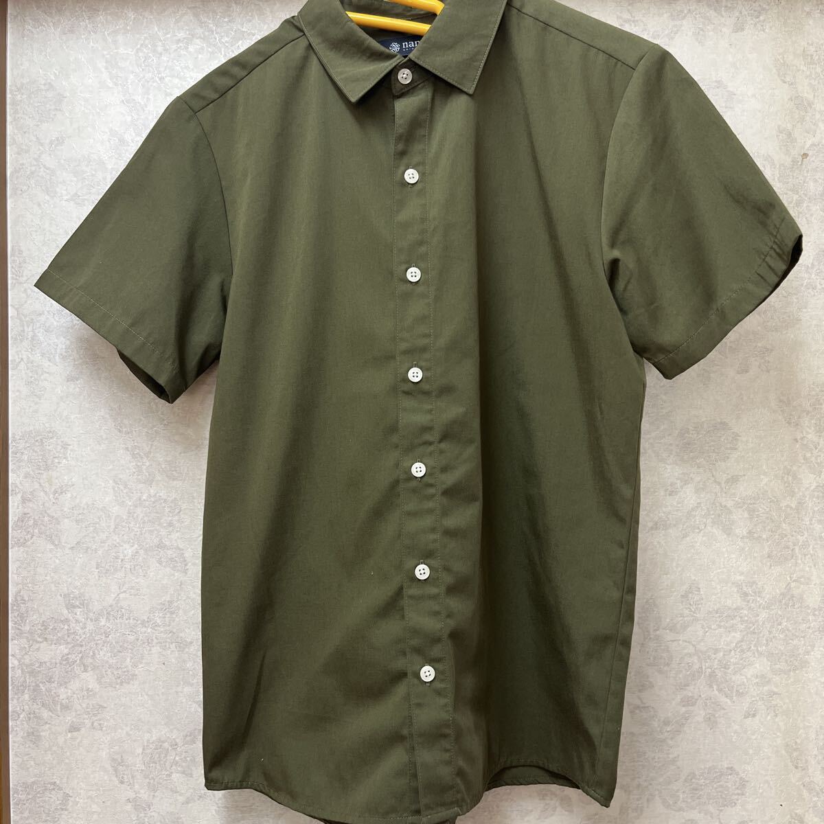 - ★NANO universe★ナノユニバース 半袖シャツ S 深緑モスグリーン カーキ ポリエステル94%レーヨン6%