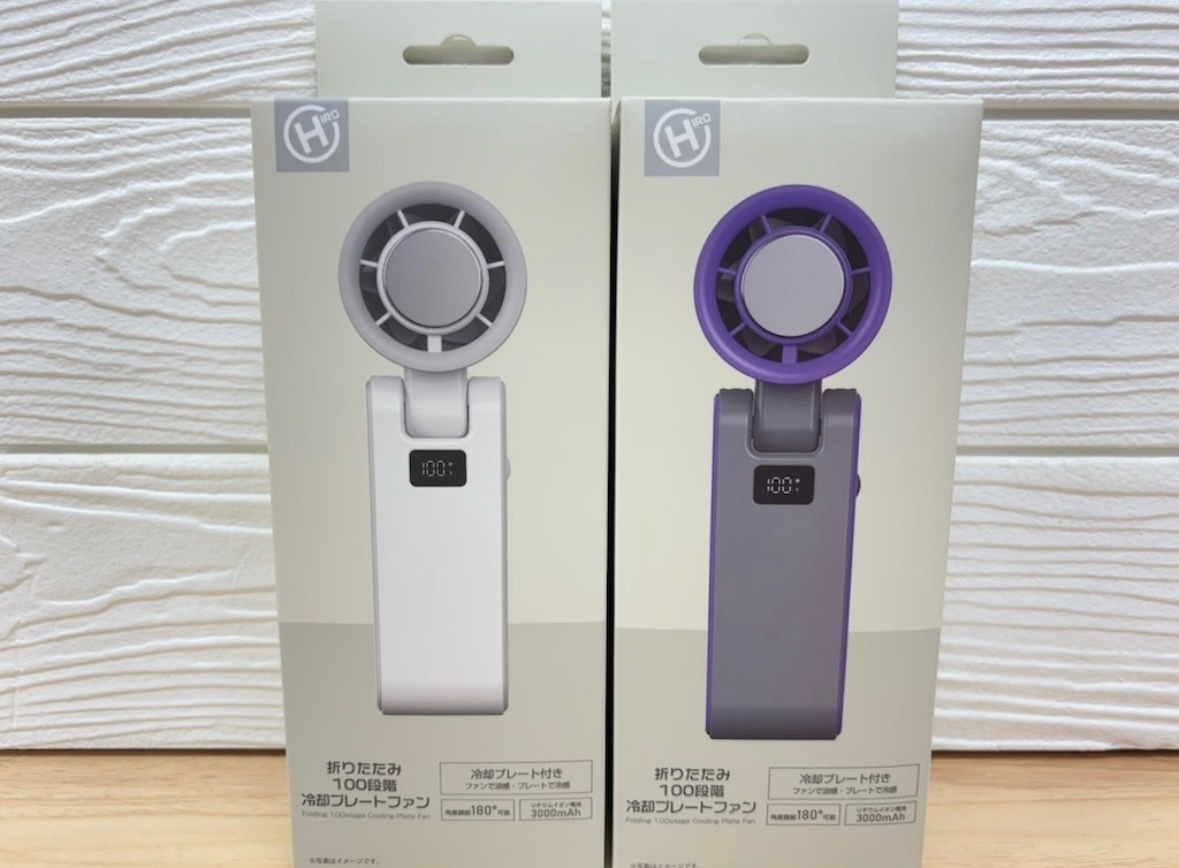 - A318 新品 2色 ホワイト&グレー 強力な冷却プレート搭載 風量100段階 折りたたみ冷却プレートファン ハンディファン 卓上 首掛け 3way仕様