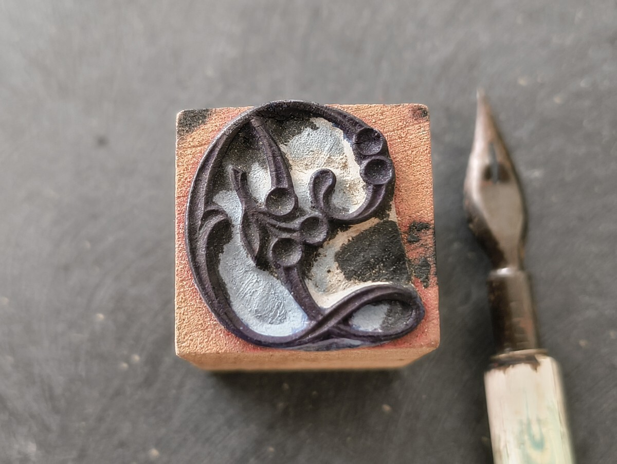 > D チェリー モノグラム 花文字 刺繍 フランス アンティーク スタンプ ヴィンテージ ハンコ レトロ 古道具 アルファベット さくらんぼ 果物