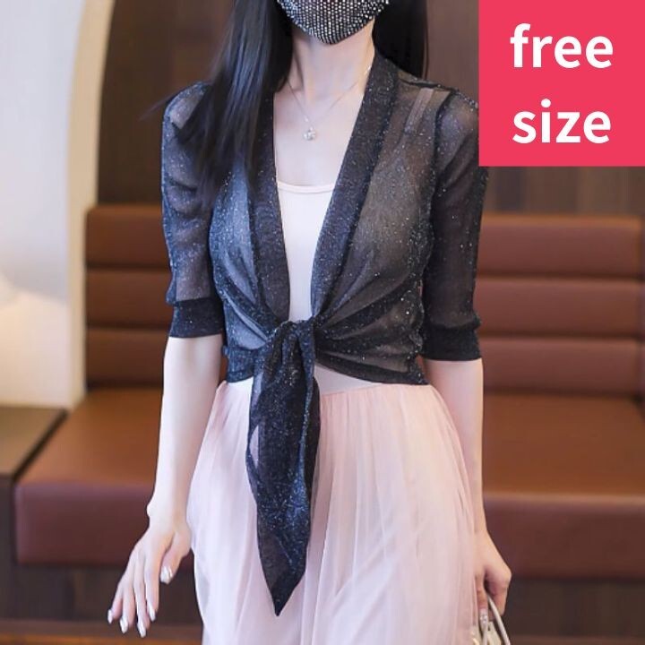 - ラメカーディガン 七分丈 メッシュボレロ 大人 フォーマル ブライダル 黒