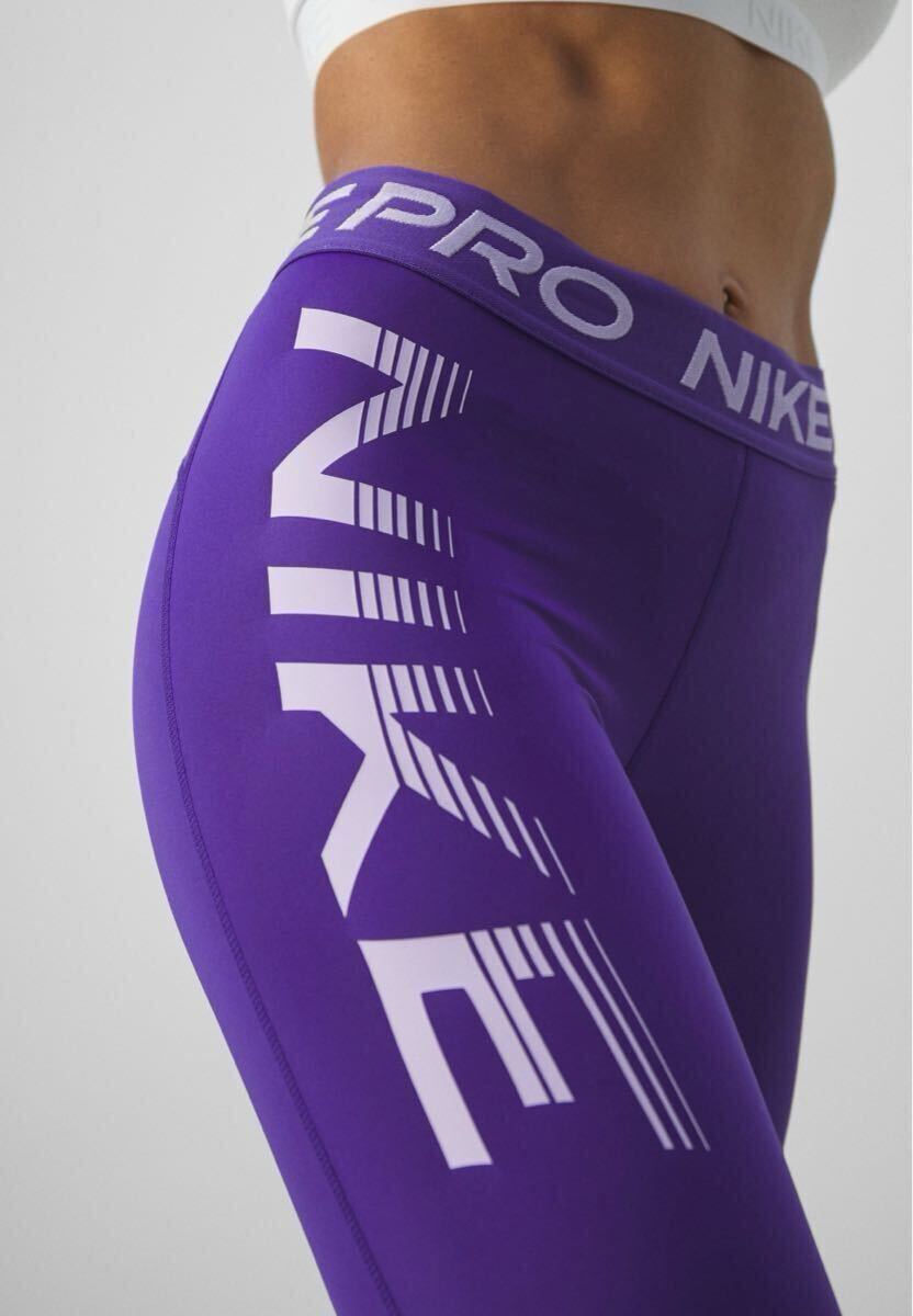 - XSサイズ 新品 ナイキ プロ タイツ NIKE PRO スポーツタイツ スパッツ レギンス ミッドライズ アンクル丈 DRI-FIT パープル デカロゴ