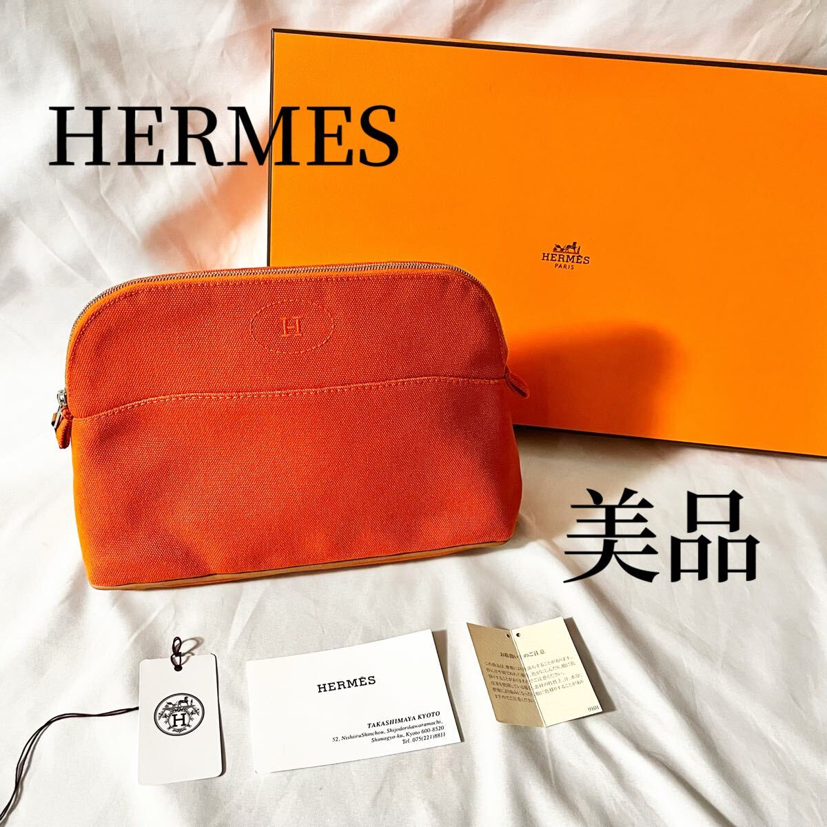 - 【美品】HERMES エルメス オレンジ キャンバス ポーチ 本体 化粧ポーチ 小物入れ 男女兼用