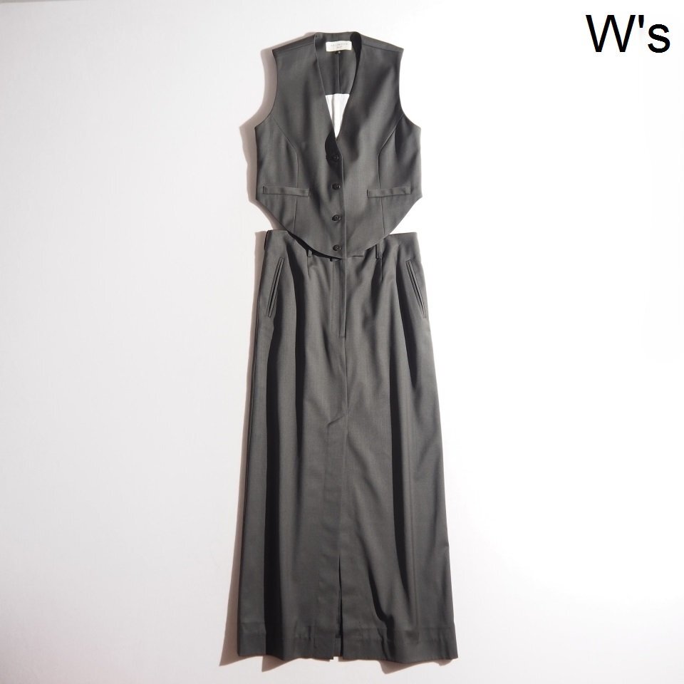 > C4584P ▼KALLMEYER カルメイヤー ドゥーズィエムクラス購入▼ 24SS ベスト FRONT SLIT スカート セットアップ カーキ S/2 春夏 rb mks
