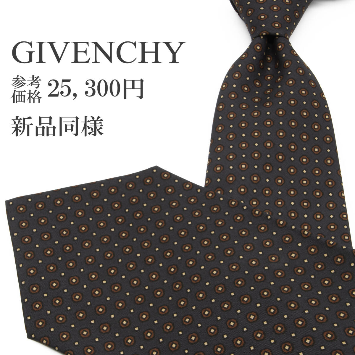 > 送料無料 ジバンシー ネクタイ 新品同様 シルク グレー 茶色 ブラウン ベージュ ジェントルマン 小紋 四角 ブランド フランス製 綺麗 P451