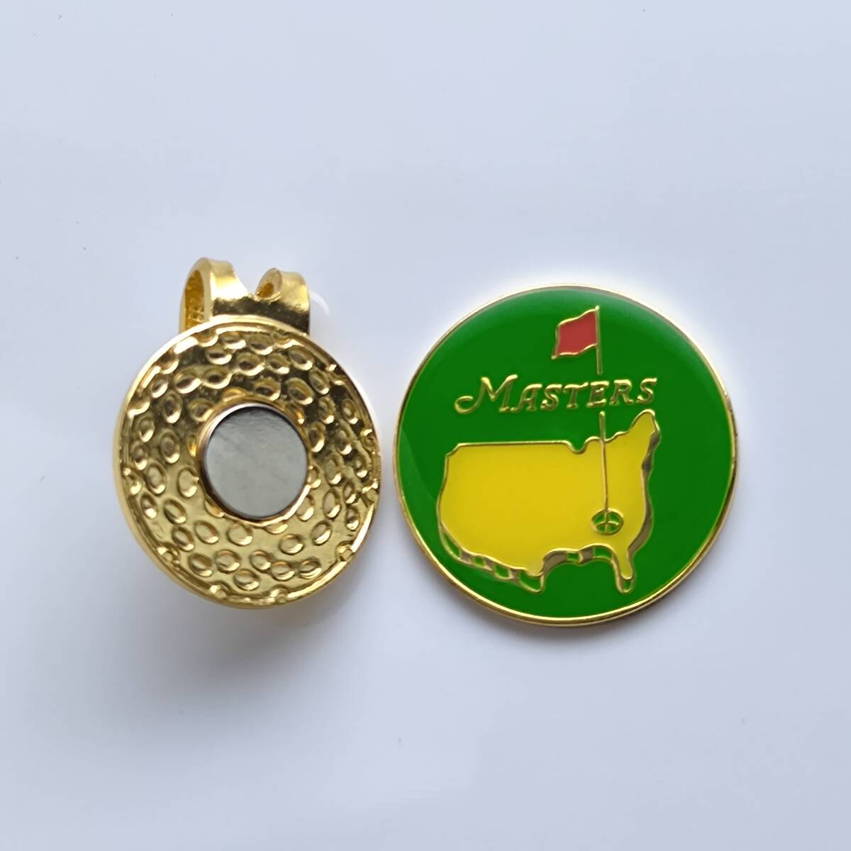 > 【MASTERS ゴールド ゴルフマーカー + 強力マグネット付き ハットクリップセット】磁石付き ゴルフ用品 ボールマーカー クリップマーカー