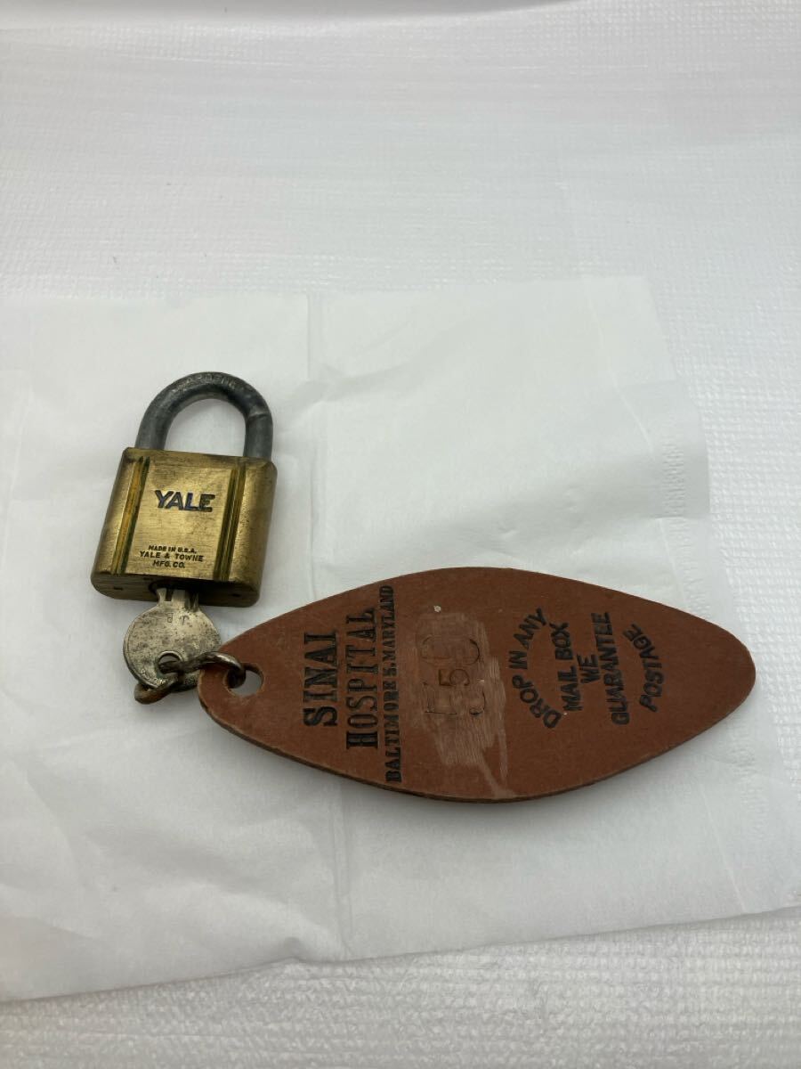 - レアレトロ アンティークヴィンテージ SINAI病院 キーホルダー YALE社 南京錠 コレクター