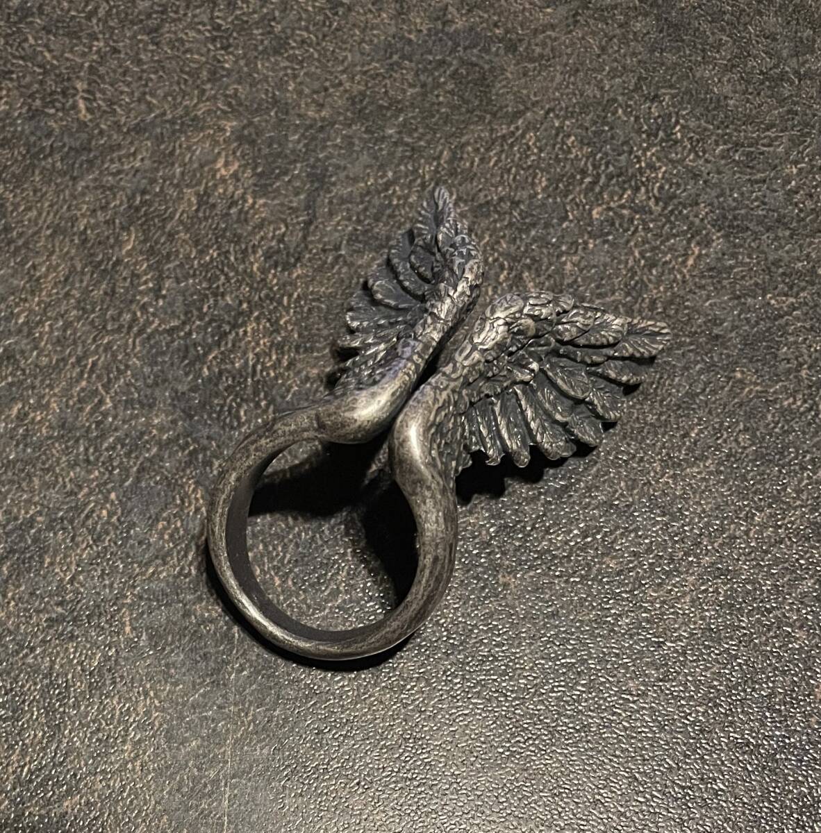 > デッドストック90sオールドbio-politicsウィング翼リング#15号~ユニセックス燻し銀ビンテージ加工アーカイブ名作90年代バイオポリティクス