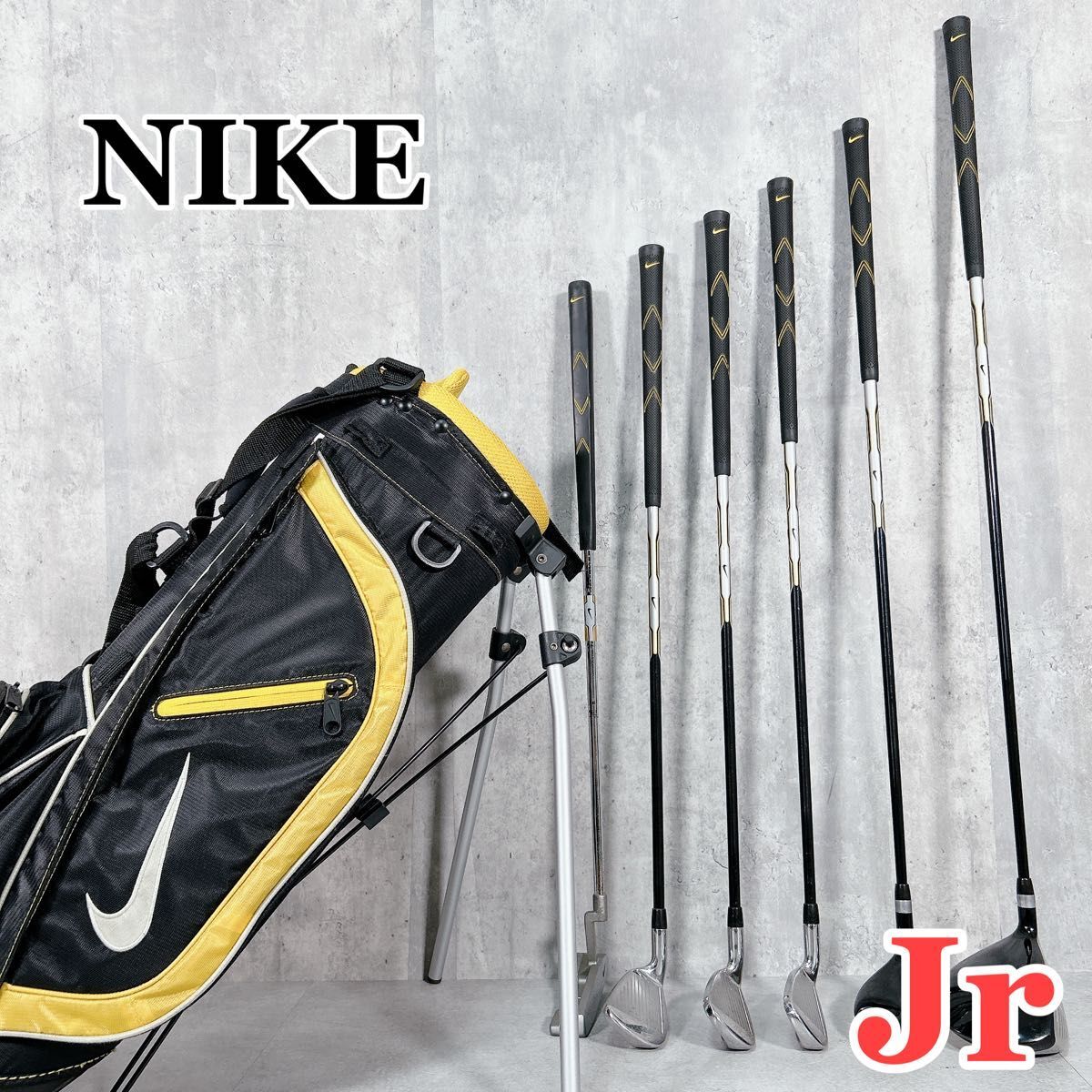 - X333 NIKE ナイキ ジュニア ゴルフ クラブ セット 7点 黒 黄色 スタンドキャディバッグ 子供用 入門 かっこいい
