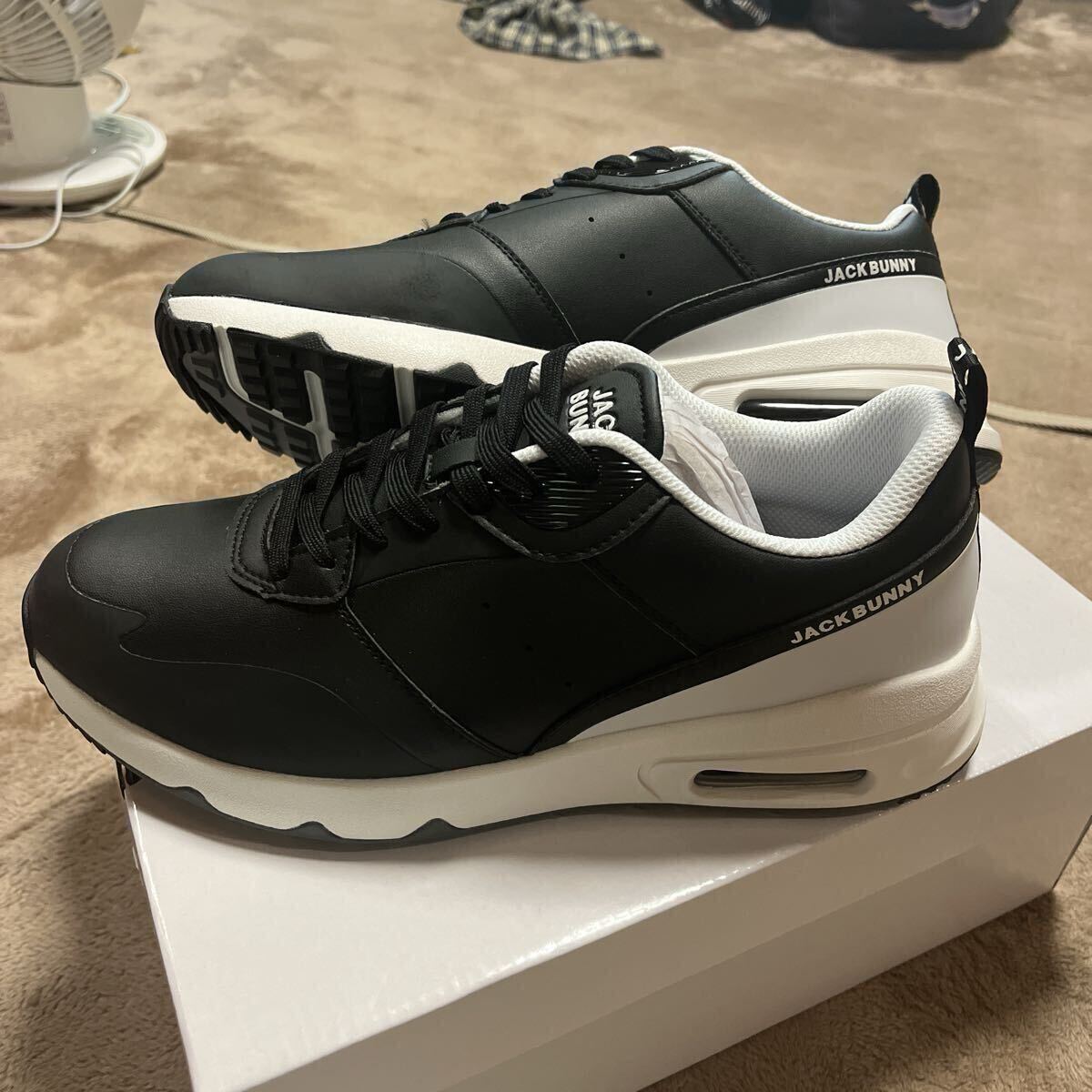 - 新品正規品 ジャックバニー パーリーゲイツ ゴルフシューズ 27.5cm ブラック×ホワイト 合成皮革 スニーカータイプ 送料無料 エア