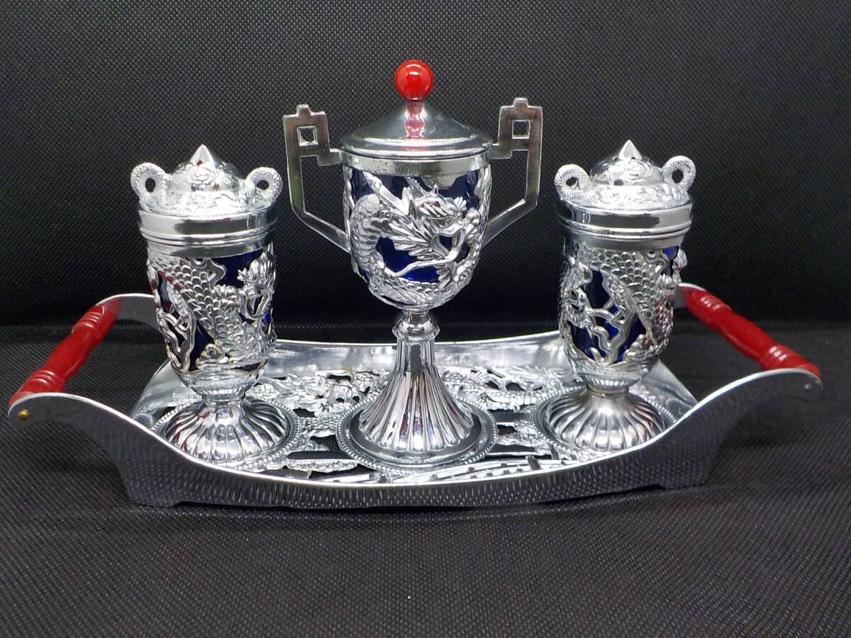 - ★レア★ビンテージ★日本製★三共龍★トレイ付き調味料入れセット★