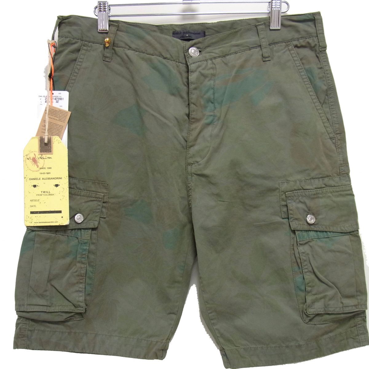 - 新品 定価27.300円☆Daniele Alessandrini ハーフ カーゴパンツ ボタニカル柄 イタリア製 USED加工 メンズ ダニエレ ショートパンツ