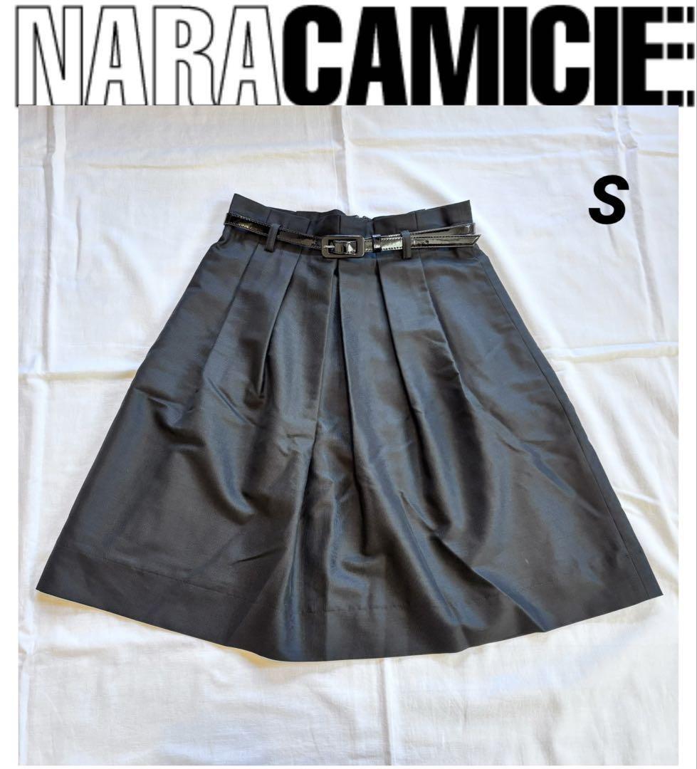 - NARACAMICIE ナラカミーチェ ベルト付き タック フレアスカート ウールブレンド 黒 S