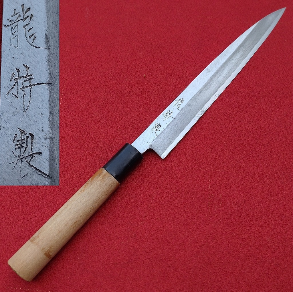 - 刺身包丁 龍特製 刃長約200㎜ 峰厚約3.5㎜ 片刃 和包丁 柳刃包丁 正夫 栗型柄 裏スキ 調理器具 刃物 日本製 【4426】【b】