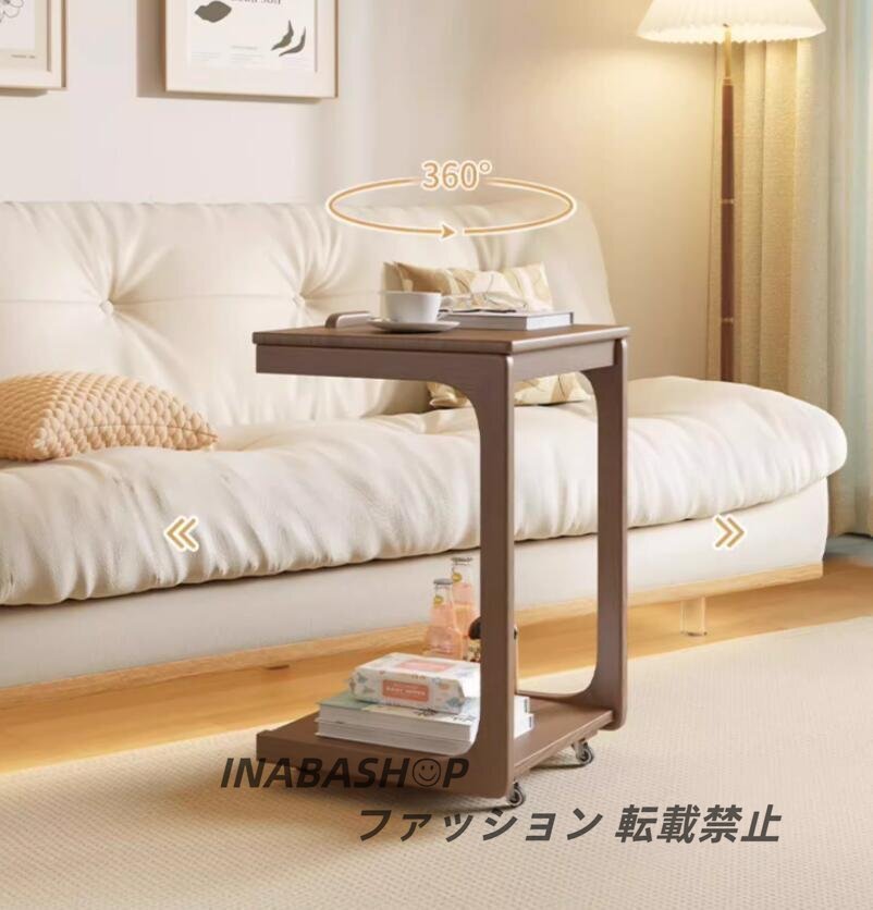 - 多機能★無垢材のコーヒーテーブル/移動可能 テーブル/リビング用のフタ付きキャスター付き茶台