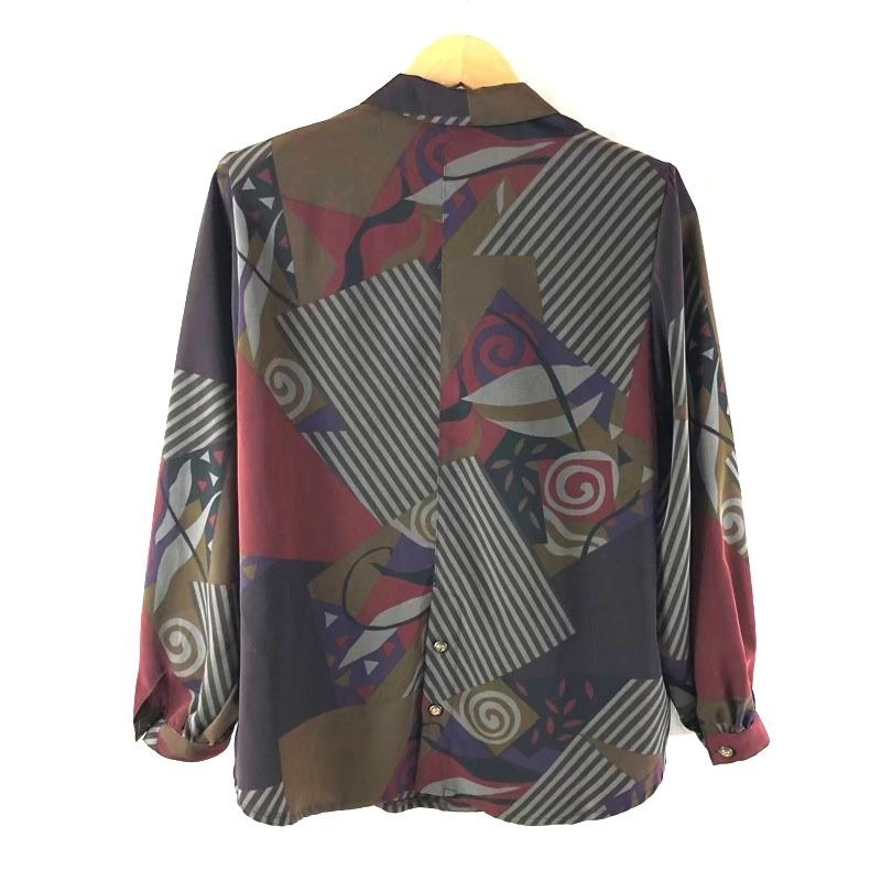 - ELLE PENSE ジャケット 上着 肩パット 長袖 飾りポケット 柄模様 日本製 ブラウン 赤 グレー 紫 Fサイズ 2025070100021