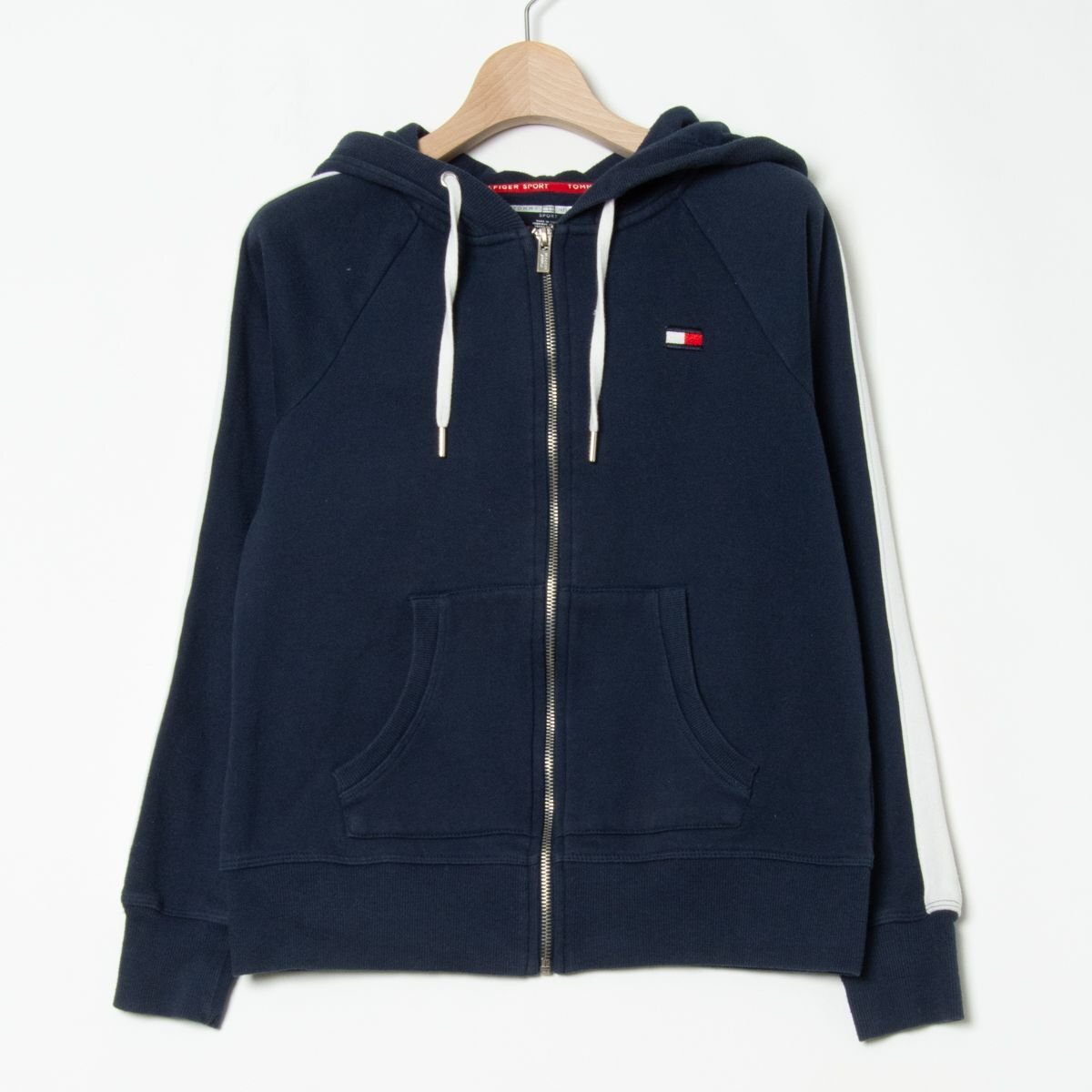 - TOMMY HILFIGER SPORT トミーヒルフィガー スウェットフルジップパーカー フーディー 綿ポリエステル カジュアル 紺 ネイビー XS Lady's