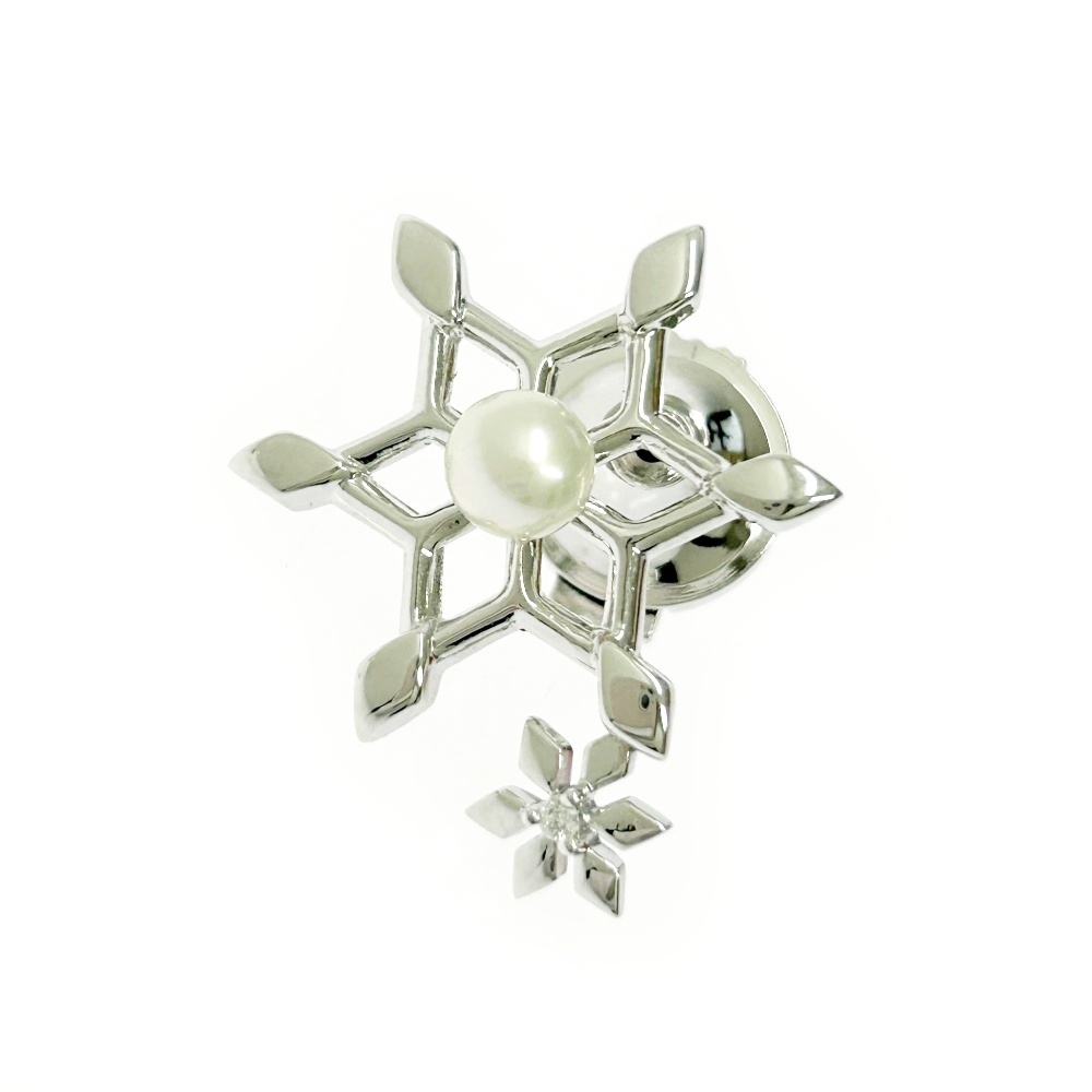 > TASAKI タサキ シルバー パール ダイヤモンド 雪の結晶 1P ピンブローチ 5.0g □S刻印 407844 ブローチ
