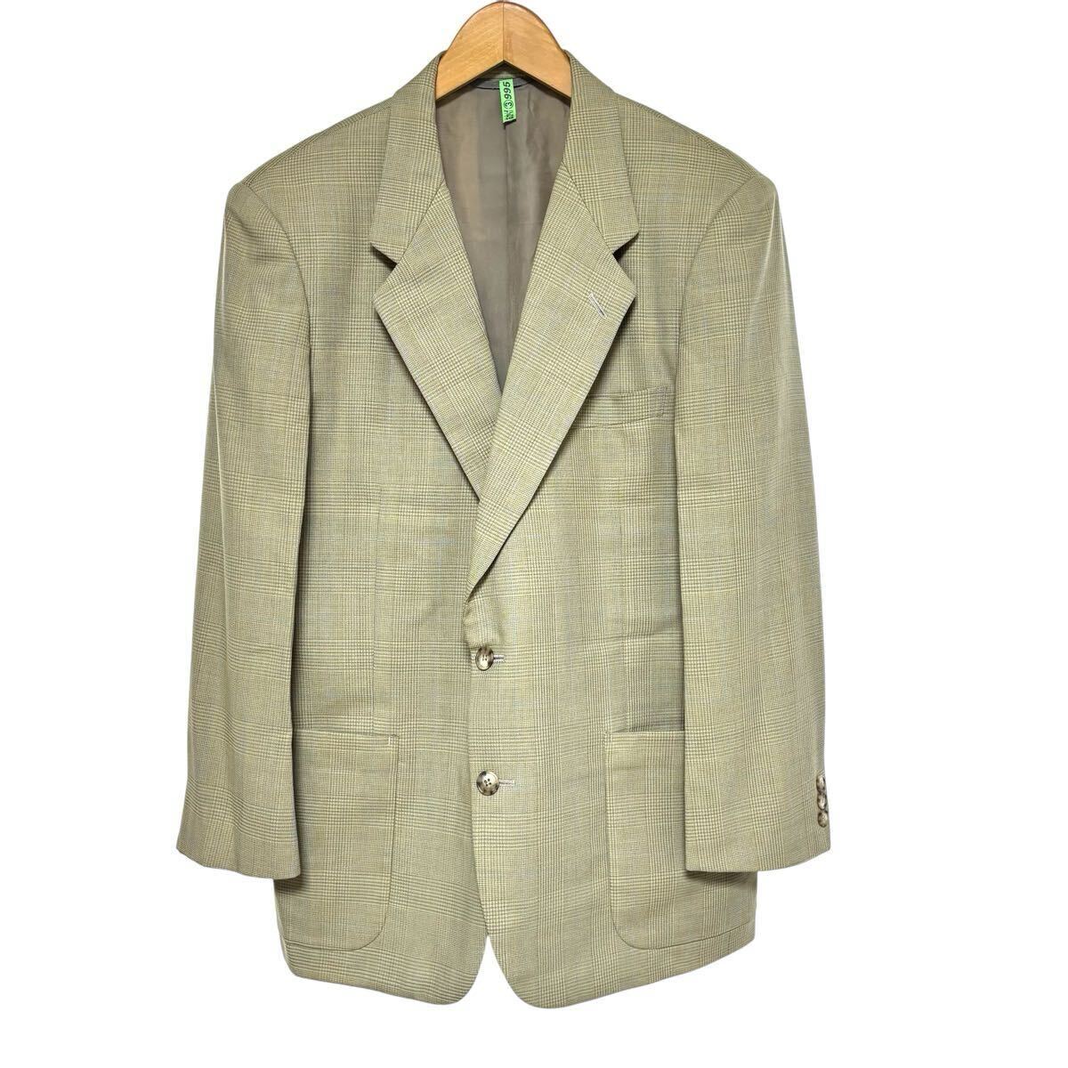 > ※J 【クリーニング済】pierre cardin ピエールカルダン テーラードジャケット グリーン×ベージュ チェック 2B 毛 日本製 A6 メンズ L相当