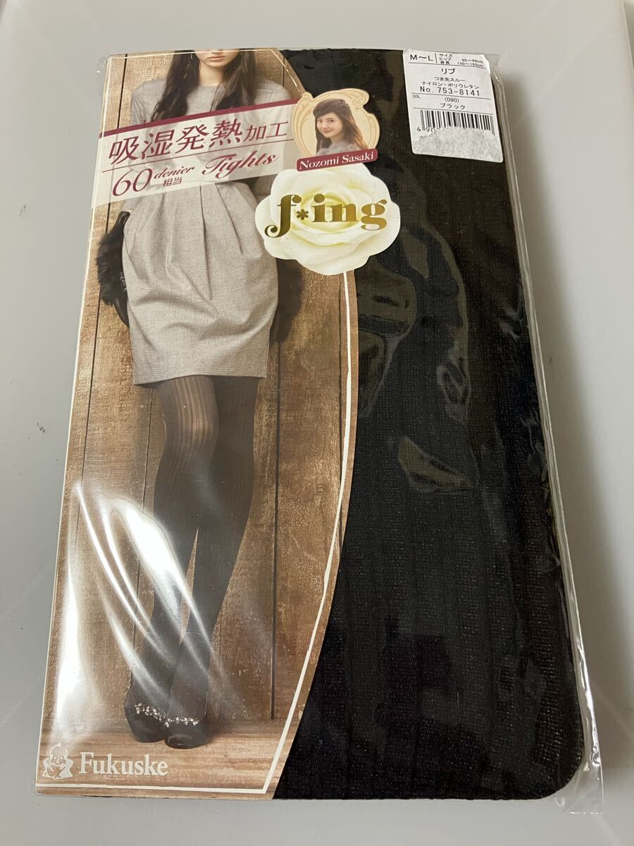 - 【送料無料】 fukuske f *ing 60デニール tights リブ ブラック 吸湿発熱加工 福助 デザイン タイツ 黒 佐々木希 M-L