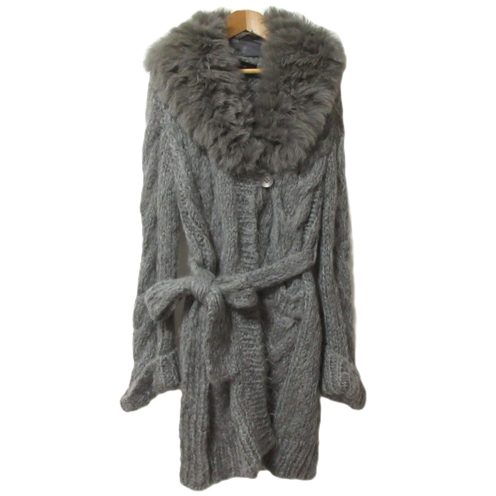 > 美品 NOVESPAZIO ノーベスパジオ 2WAY ブルーフォックスファー ベルテッド モヘヤニットコート カーディガン サイズ38 グレー