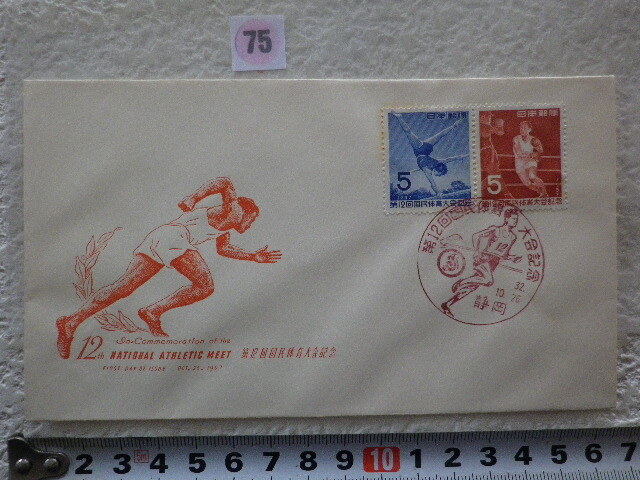 - FDC 第12回国体 1957年 2貼1消 説明書無●75●同梱大歓迎