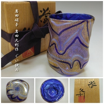 - 【T-466】岩田工芸硝子 岩田久利 作 ぐい飲み 酒器 共箱付