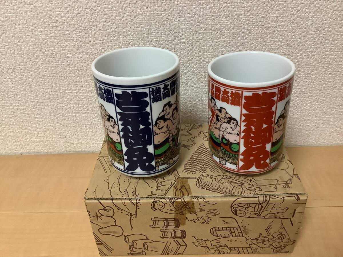 - 新品未使用 大相撲 大型湯呑み 土産 夫婦湯呑み 2客セット 貴乃花 武蔵丸 /千代大海 琴光喜 送料無料