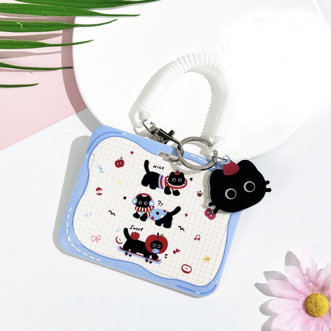 - 猫のイラスト付きスライド式パスケース 定期入れ 通勤通学