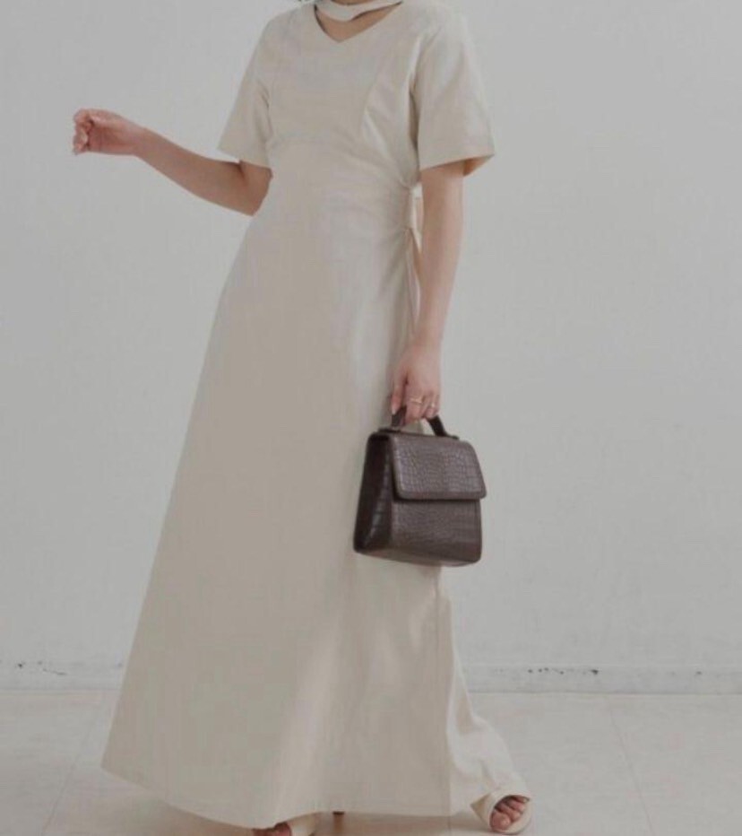 - VANNIE U☆バックあきデザイン半袖ロングワンピース☆アイボリー FREE