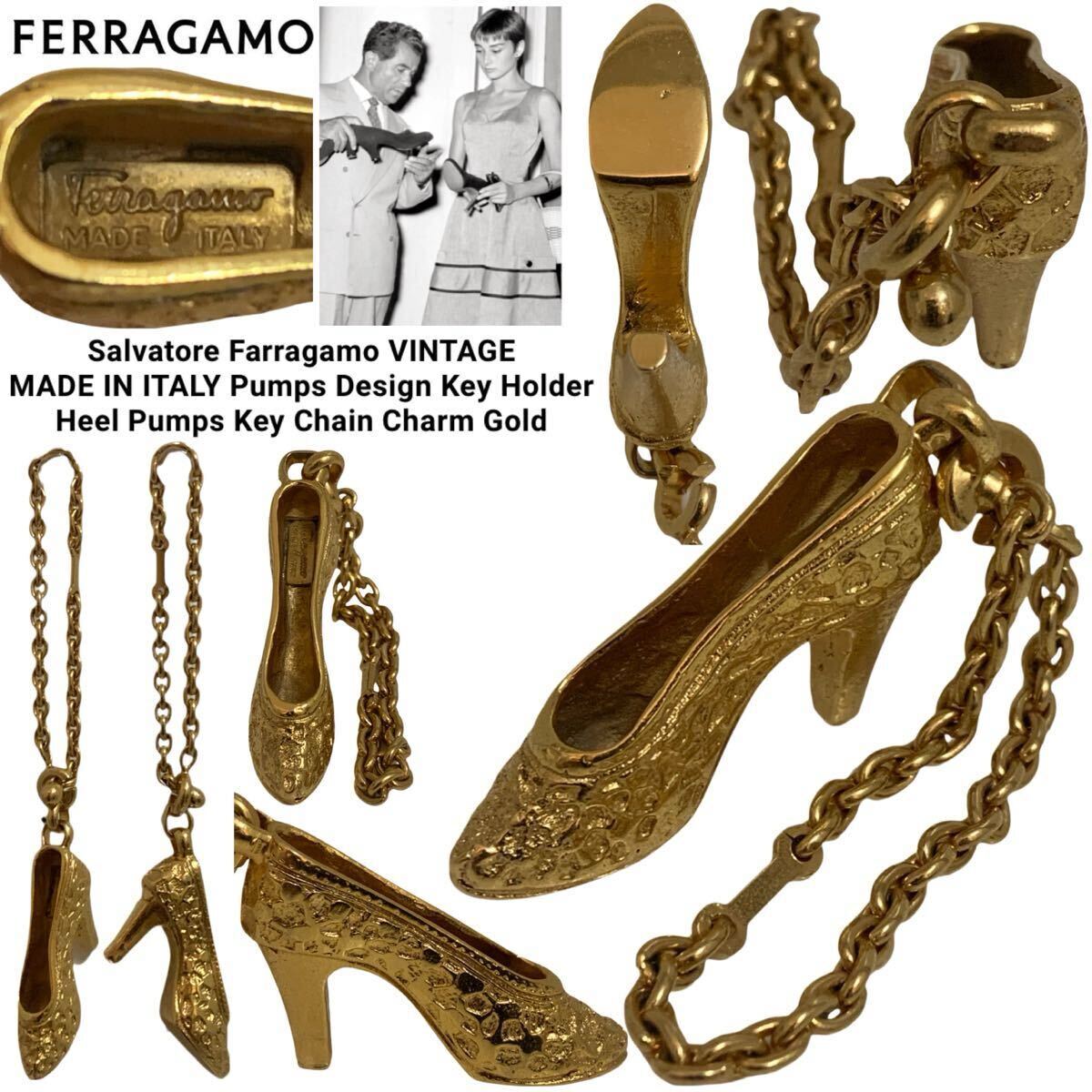 - Salvatore Farragamo VINTAGE サルヴァトーレ フェラガモ ヴィンテージ MADE IN ITALY パンプスデザインキーホルダー ゴールド アーカイブ