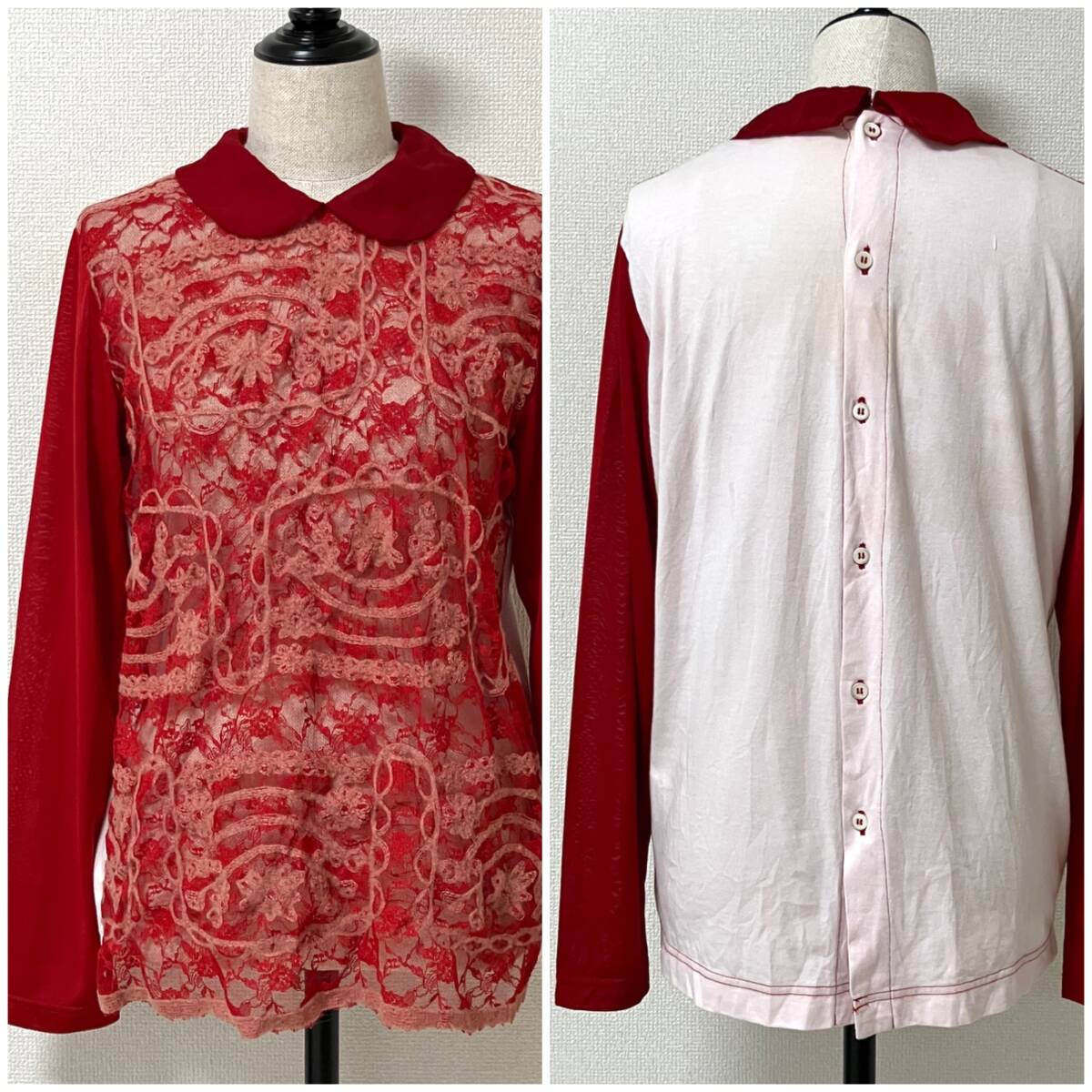 > AD2016 tricot COMME des GARCONS メッシュ レース 異素材 切替 ブラウス 赤 Mサイズ トリココムデギャルソン カットソー archive 5080054