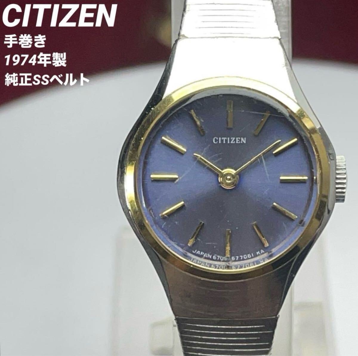 - 70s CITIZEN 手巻 純正ベルト コンビカラー パープル文字盤 腕時計 ヴィンテージ アンティーク 稼働